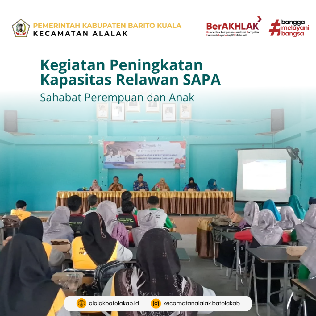 KECAMATAN ALALAK Selamat Datang di Website Kecamatan Alalak Kabupaten Barito Kuala INFORMASI LAYANAN KTP Kartu Keluarga Nikah Akta Kelahiran Akta Kematian Ahli Waris Pindah Datang Alur Pelayanan BERITA TERBARU Penyaluran Pembayaran BLT Kesra untuk Warga Kecamatan Alalak Kecamatan Alalak, 28 November...Read More admin_kecalalak02/12/2025Tak Berkategori Selamat PKK Alalak! Kerja Keras Terbayar dengan Deretan Juara Kecamatan Alalak, 17 November...Read More admin_kecalalak17/11/2025Tak Berkategori Kegiatan Peningkatan Kapasitas Relawan Sahabat Perempuan dan Anak Read More admin_kecalalak17/11/2025Tak Berkategori Load More AGENDA TERKINI There are no upcoming events.