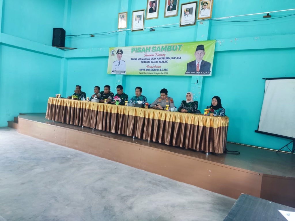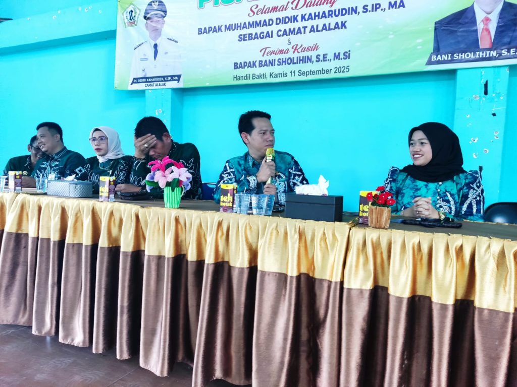 Kecamatan Alalak, 11 September 2025 – Pemerintah Kecamatan Alalak secara resmi melaksanakan prosesi Serah Terima Jabatan (Sertijab) Camat Alalak yang berlangsung khidmat di Aula Sebaguna Kecamatan Alalak. Kegiatan ini menandai berakhirnya masa tugas Plt. Camat Alalak, Bapak Bani Sholihin, SE., M.Si., dan dimulainya kepemimpinan camat yang baru, Bapak Muhammad Didik Kaharudin,S.IP., M.A.